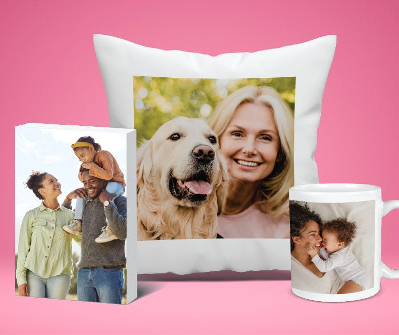 Shop a range of Mother's Day gifts, upload your photos, and place an order online.